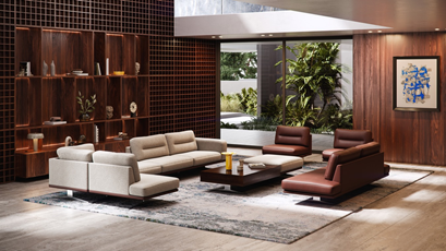 System modułowy Bologna to propozycja dla wnętrz, w których liczy się porządek formy, wygoda i swoboda aranżacji. Składa się z elementów tapicerowanych oraz stolików, które można dowolnie zestawiać, dopasowując układ do przestrzeni i stylu życia. Meble dostępne są w skórze naturalnej lub w połączeniu skóry z tkaniną. Skórzane lamówki podkreślają linię brył, a chromowane stalowe nogi nadają całości lekkości. Komfort zapewniają siedziska z pianki HR na sprężynach falistych.